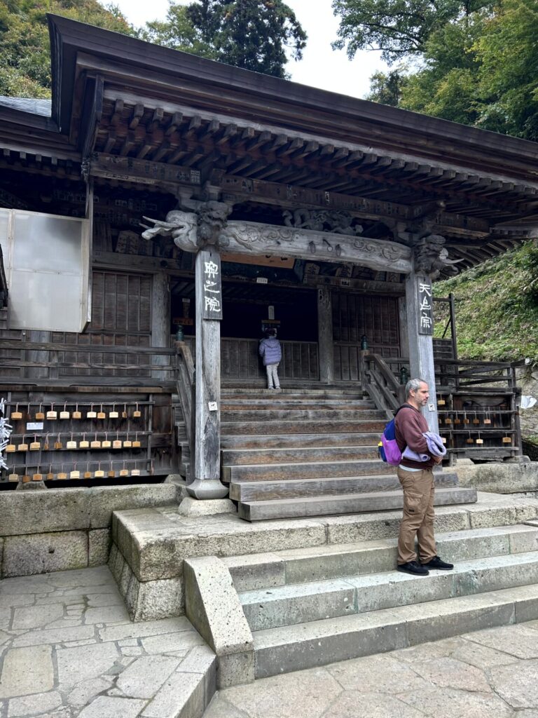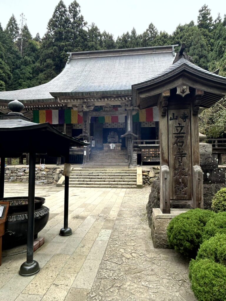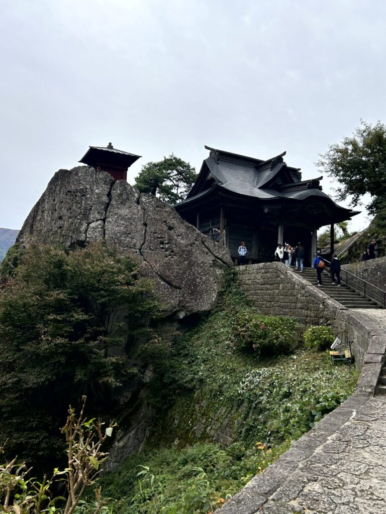 今回は、紅葉にはまだ若干早いですが、山形県の立石寺と蔵王に行くことにします。根本中堂そばの駐車場に車を置き、まずはお参りです。ここにある不滅の法灯は、もともとは延暦寺から分かれたものですが、信長の焼き討ち後、延暦寺再建のおりは、ここから分けたと伝えられています。途中には、芭蕉の句碑と像があります。