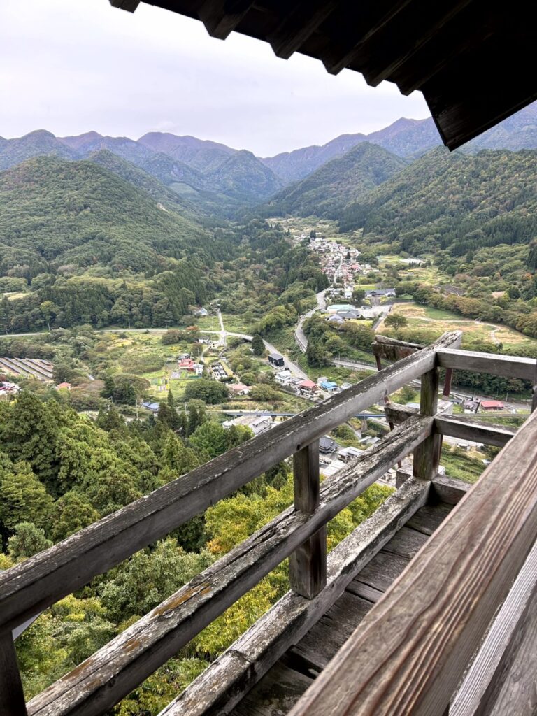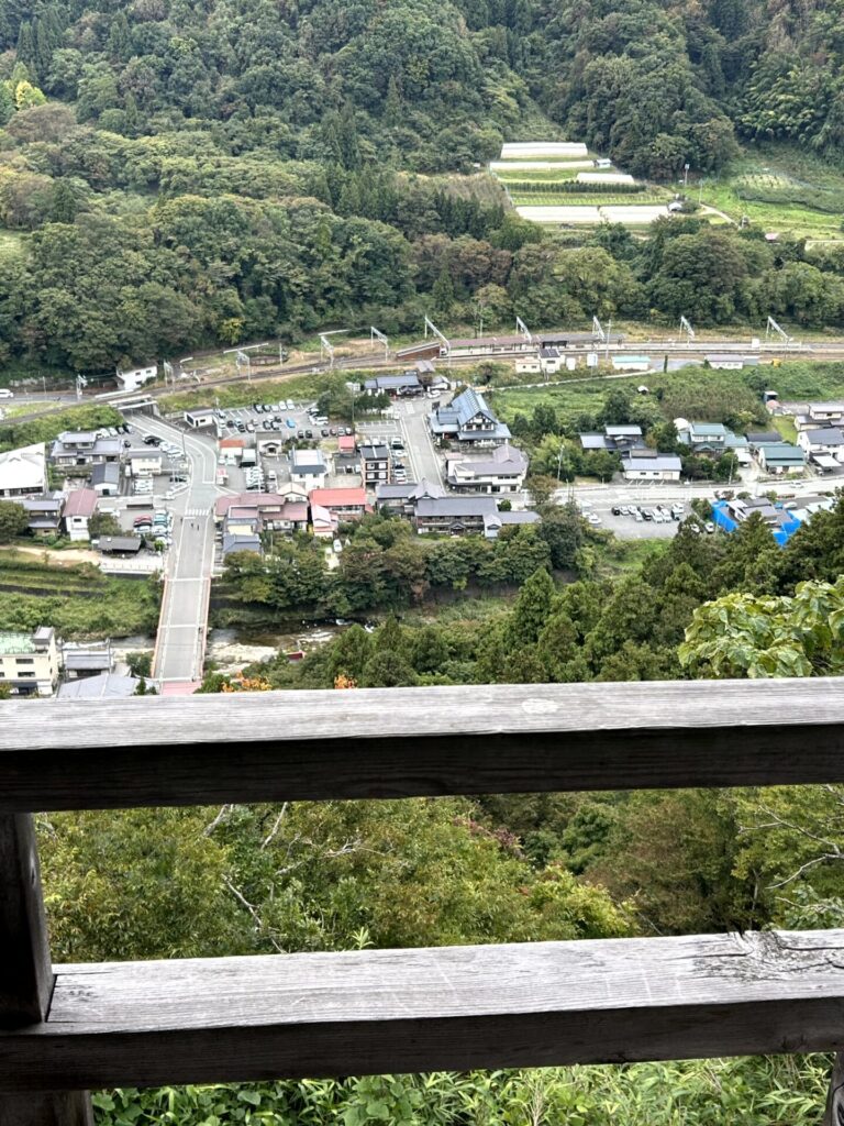 奥の院に行く前に、開山堂と五大堂に立ち寄ります。開山堂は立石寺を開山した円仁のお堂で、木製の尊像が安置されています。そのそばに納経堂がありますが、これは山内で最も古い建物だそうです。開山堂の脇を上ると、いよいよ五大堂です。ここは五大明王を祀り、天下太平を祈る道場で、山寺随一の展望台です。眼下に、山寺の門前町や山里が一望できます。