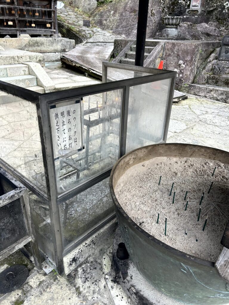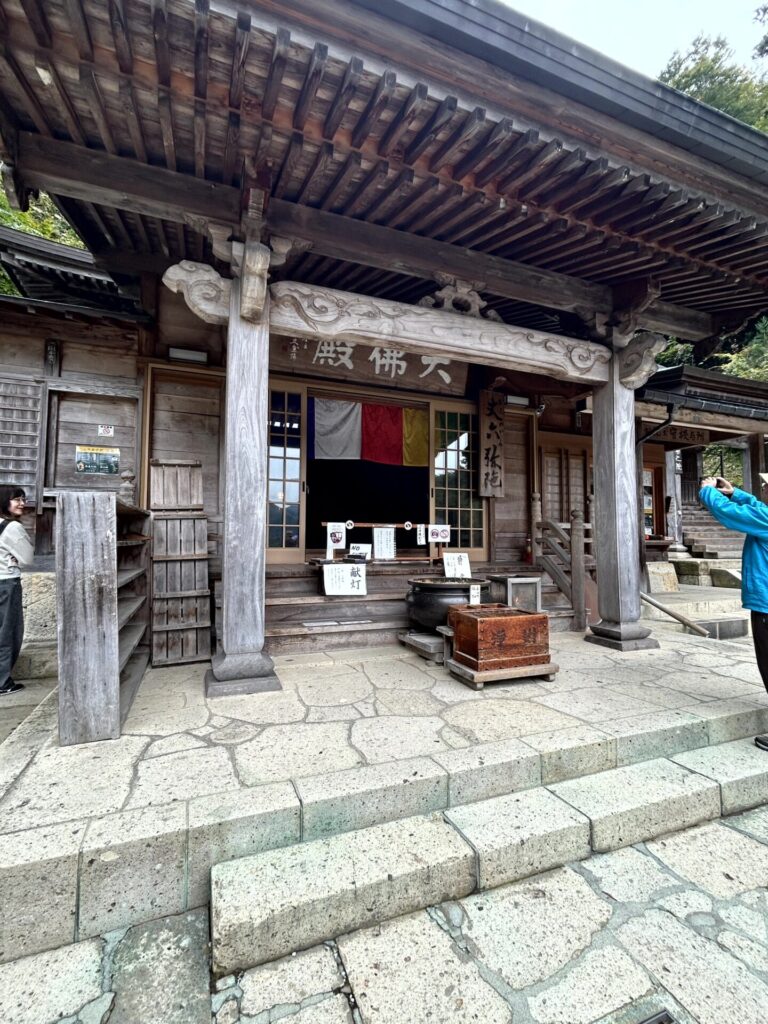 いよいよ奥の院です。最後の階段を上り切ったところに奥の院があります。奥の院は左の大仏殿と右の如法堂の総称です。参拝後、線香とろうそくを奉納しました。