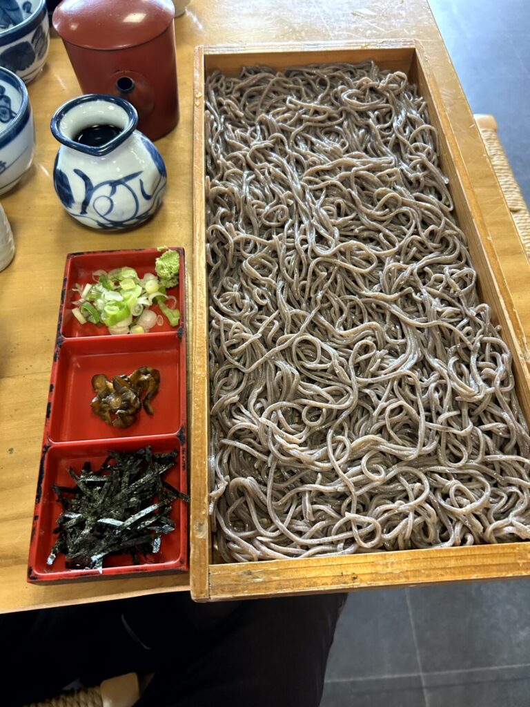 登山口から奥の院まで上り、奥の院から下山口まで下って2時間弱の行程です。昼食は美登屋でお蕎麦を頂くことに。板そば(二人前)と名物のだしそばをお願いしました。ゆであがる前に、出羽桜を1合。そばの1人前はボリュームはそれほど多くないと考えていましたか、ここの1人前はボリュームがあり、お腹がいっぱいに。当面蕎麦は食べたくない感じです。昼食後は山形市へ向かいます。
