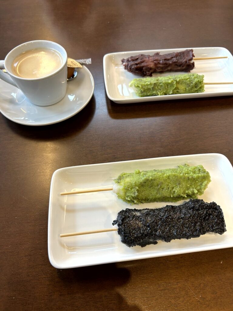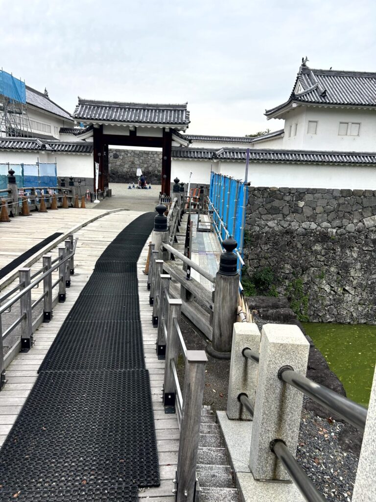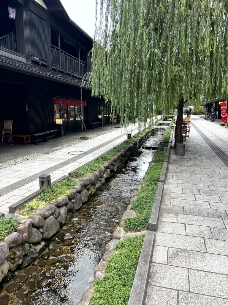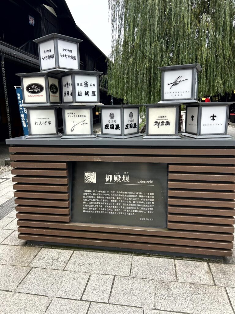 文翔館前からの七日町商店街の大通りを進むと、水の町屋七日町御殿堰があります。市内を流れていた水路を回収復元して、町屋風の建物や蔵の中に飲食店や雑貨店を配置しています。ただし長さは 80mくらいです。山形城跡の霞城公園に向かいます。途中、餅の星野屋に立ち寄り、お餅をいただきました。