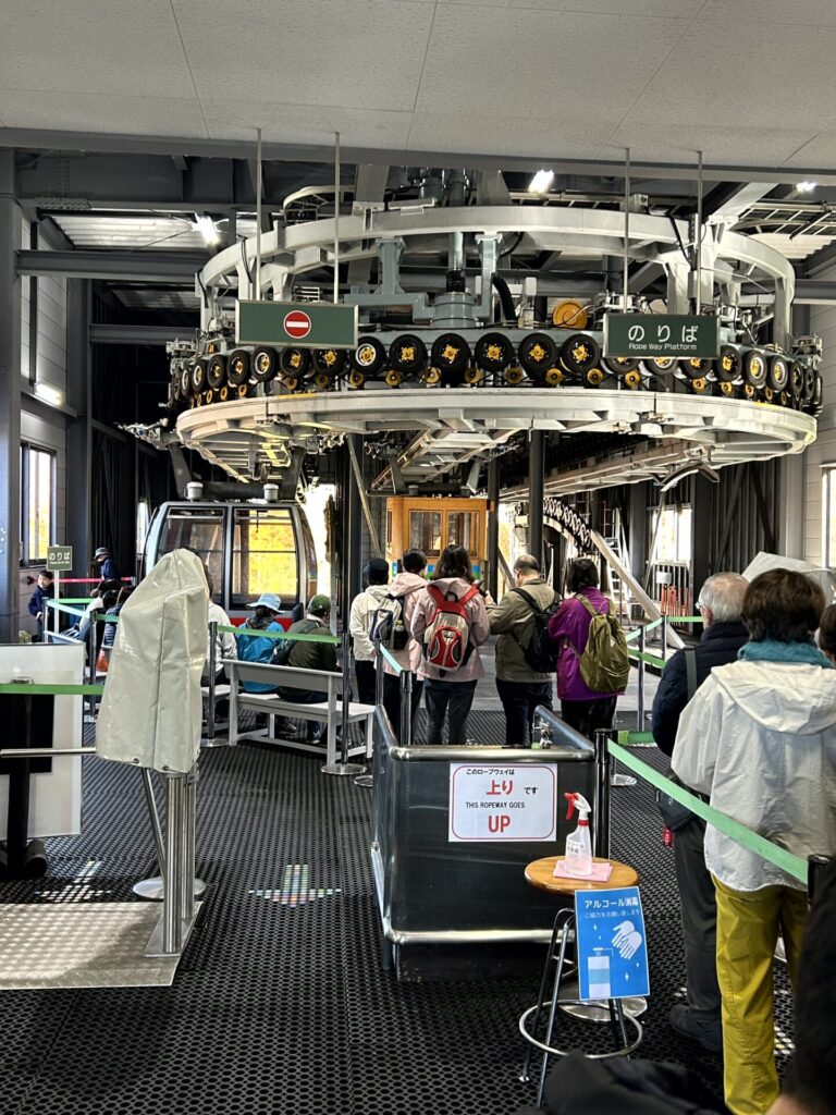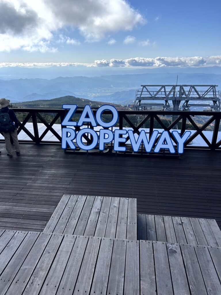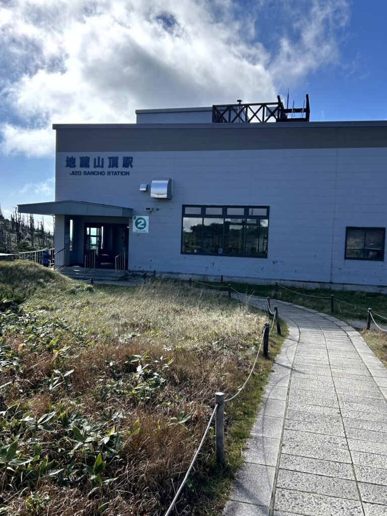 最後の観光先であるザ温泉に行きます。ここではロープウェイに乗り山の上からの景色を楽しみたいと思います。計画では、蔵王温泉駅から蔵王中央ロープウェイに乗ってドッコ沼を見る予定でしたが、誤って手前の蔵王山麓駅(標高855m)から蔵王ロープウエイに乗ってしまいました(ブラタモリでは蔵王中央ロープウェイに乗っています)。ロープウェイは、途中の樹氷高原駅で乗り換え、地蔵山頂駅(標高1661m)まで20分程で一気に800m上昇します。さすがに、頂上は冷え切っており、長居できません。