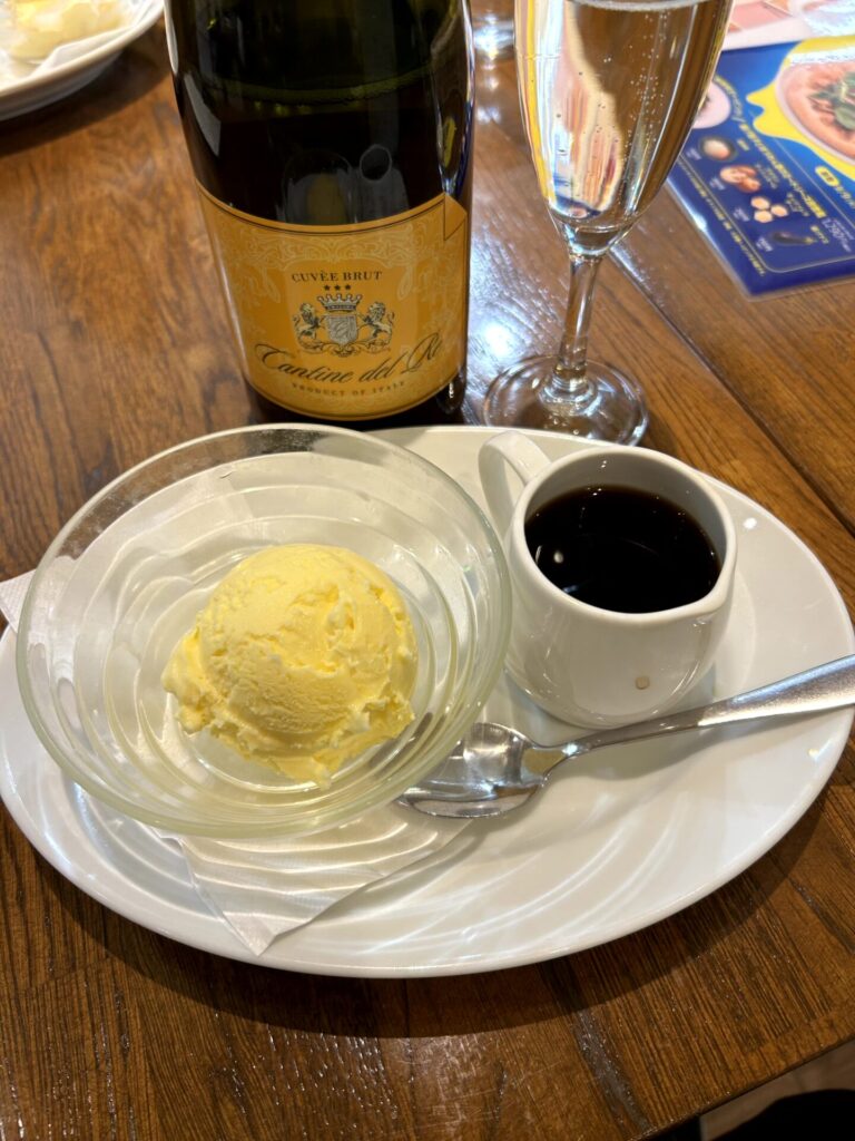 夕食は、昨日、お蕎麦もいも煮も食べましたので、山形駅そばも山形五十番飯店で、中華にします。蔵王温泉では中途半端な時間となり、昼食を食べていませんでしたので、ここではあれやこれや頼んでみました。お酒も羽陽男山つららぎ(山形市男山酒造)を注文。満腹となり、店を出ましたが、列車にはまだ時間があります。デザートは行けそうなので、駅ビルS-PALのカプリチョーザで、アフォガートとスパークリングワインを頂きました。最後までよく飲みましたね。以上で山形への旅行は終わりました。