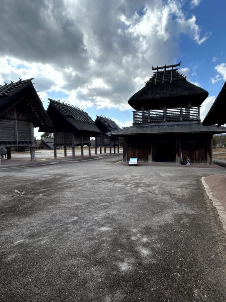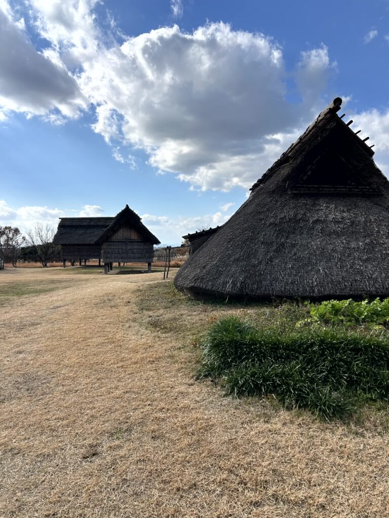 次は市と倉のエリアです。ここには、高床式の倉庫群と、中心には市が行われていた建物があります。見学の最後は、南のムラのエリアです。この区域には塀や壕などは無く、竪穴住居3~4棟に対し共同の高床倉庫1棟が付くという、他と地域の一般的な集落と似ています。これで吉野ヶ里歴史公園の半分は回ったことになります。本当に、ここは広いですね。