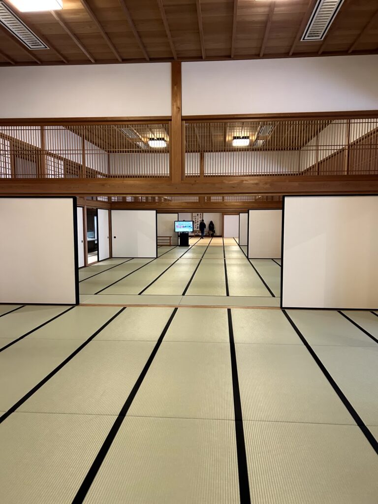 次は、日本100名城の一つ、佐賀城に向かいます。吉野ヶ里歴史公園からは30分ほどです。佐賀城は天守から三の丸まで1726年に焼失していますが、本丸再建に際して造られた本丸の門である鯱の門は、当時の姿を残しています。本丸御殿も再建されているのですが、明治以降役所や小学校として使用されていました。2004年、その遺構を残しながら佐賀城本丸歴史館として開館しています。 入口から外書院に入ると、外御書院の大空間が現れます。ここには本丸完成披露の折、千人の家臣が集まったと言われています。
