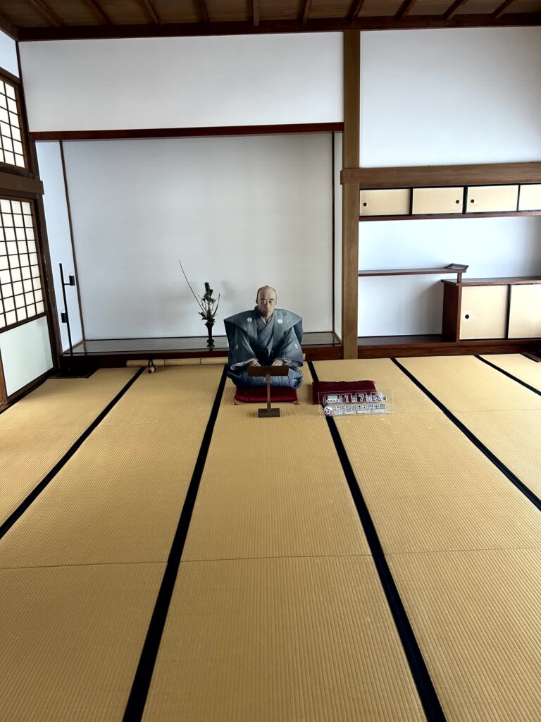 御座間は、藩主鍋島直正の仕事部屋です。ここも鯱の門と同様、現存する天保期の建物です。鍋島公が座っていらっしゃいますので、私も隣に座って写真を撮らせて頂きました。ここの障子の一部は石垣張りとなっています。当時は、大きな紙がなかったので、紙が重なる部分を石垣のように見立てたようです。東廊下には、没後150年を記念して、佐賀の偉人、江藤新平の功績を紹介しています。御料理間では幕末の佐賀藩が推進した反射炉や蒸気船など、科学技術の成果を紹介しています。