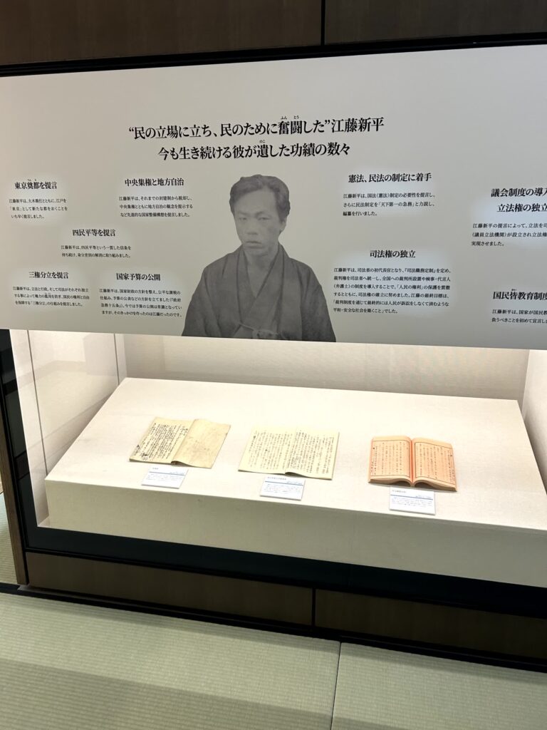 美術館は佐賀出身で東京美術学校(東京藝術大学)教授であった岡田三郎助の絵画常設され、博物館はこれまた佐賀出身の大隈重信が作った高輪築堤の説明がメインでした。美術館の外には東京から移設した岡田三郎助のアトリエが公開されていました。やはり佐賀の偉人オシですね。
