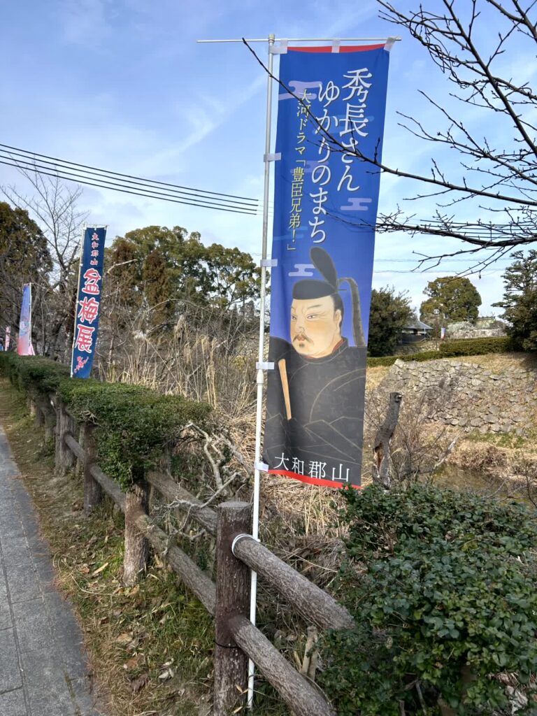 今日は奈良の西の京(右京)を巡りたいと思います。その前に、NHK大河の豊臣秀長で話題になっている大和郡山城訪ねてみたいと思います。近鉄郡山駅で降り、歩くこと10分、目の前に郡山城の堀が見えてきます。やはり秀長の幟が立っていました。堀に架かっている竹林橋址を渡り、竹林門跡を過ぎると、すぐ本丸ですが、そこには初代郡山藩主・柳沢吉里の父であり、5代将軍・徳川綱吉に重宝された側用人の柳澤吉保を祀っている柳澤神社が鎮座しています。