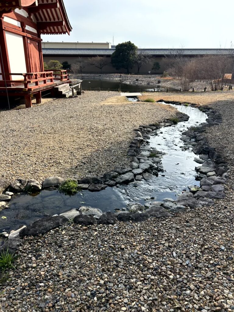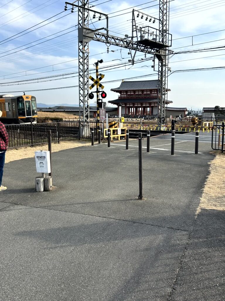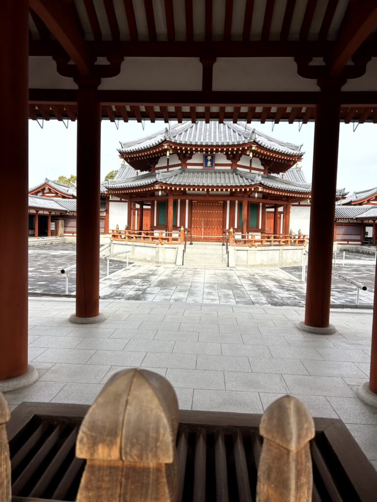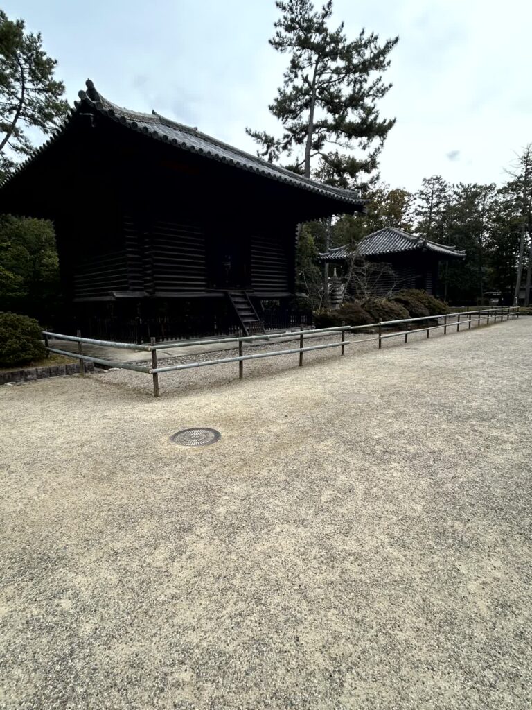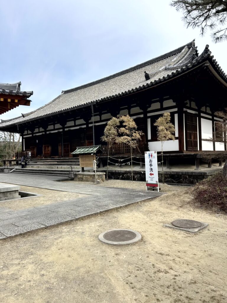 次は再び近鉄橿原線に乗り、西ノ京駅で降り、薬師寺に向かいます。5分程で興楽門に到着します。そこから境内に入り、御朱印受付や売店のある東僧坊を抜けると、目の前に大講堂と金堂が現れます。いずれの建物も再建された建物ですが、中にある仏像は国宝揃いです。