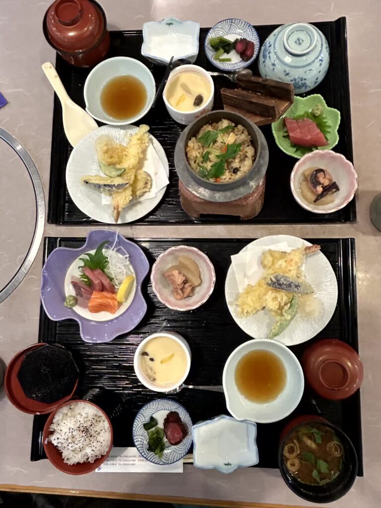昼時となりましたが、周囲には食事の出来そうなところが無いので、平城宮跡に向かって歩くことにします。15分程歩くと、平城宮跡近くに「花惣奈良本店」が有りましたので入ります。炊き込みご飯定食と和定食を頂きました。