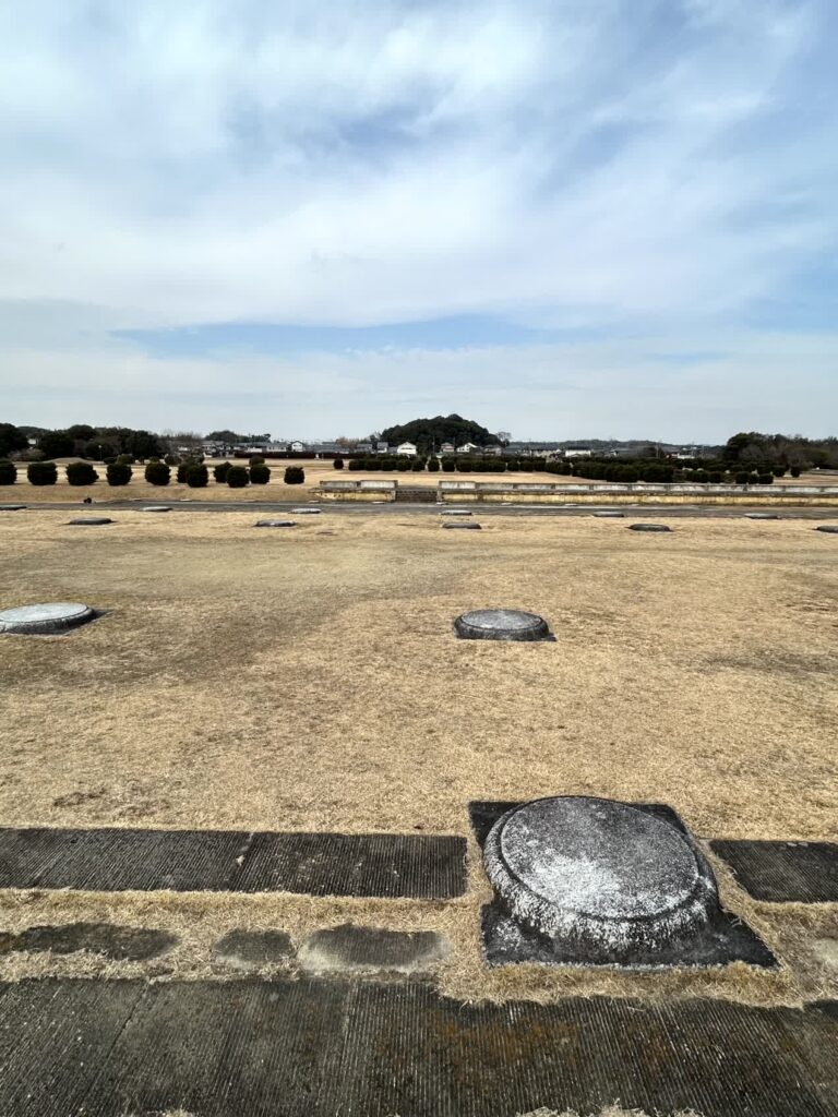 第一次大極殿の東側には、第二次大極殿(平城京再遷都745年~長岡京遷都784年の間使用)の遺構が広がっています。第二次大極殿は第一次大極殿と異なり、復元せずに、遺構として保存していくようです。第二次大極殿の北側は内裏だったようです。