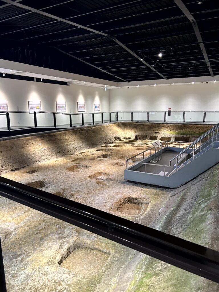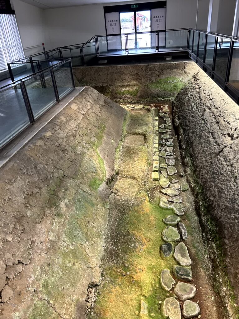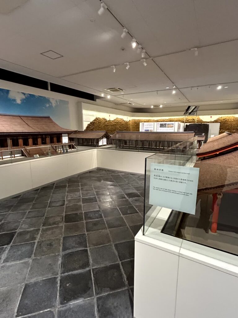 第二次大極殿の東側に遺構展示館があります。奈良時代の役所の建物跡である遺構を、発見当時の状態で保存・展示しています。この遺構からは他の役所ではあまり用いられないレンガが多数出土したことから、特別の役所(太政官?)が存在したのではないかという説もあるようです。