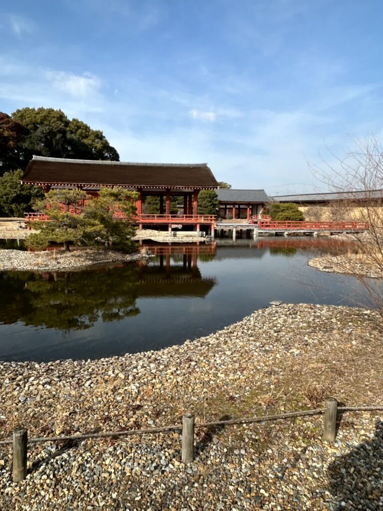 平城宮の東に張り出した部分を東院といい、その南東隅に大きな庭園の遺跡が発見されています。これを復元したものが、東院庭園です。これは迎賓館の役割を担い、宴会や儀式が催されていたようです。