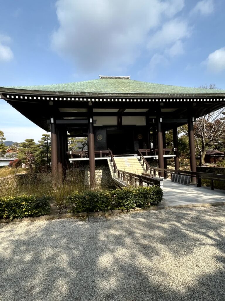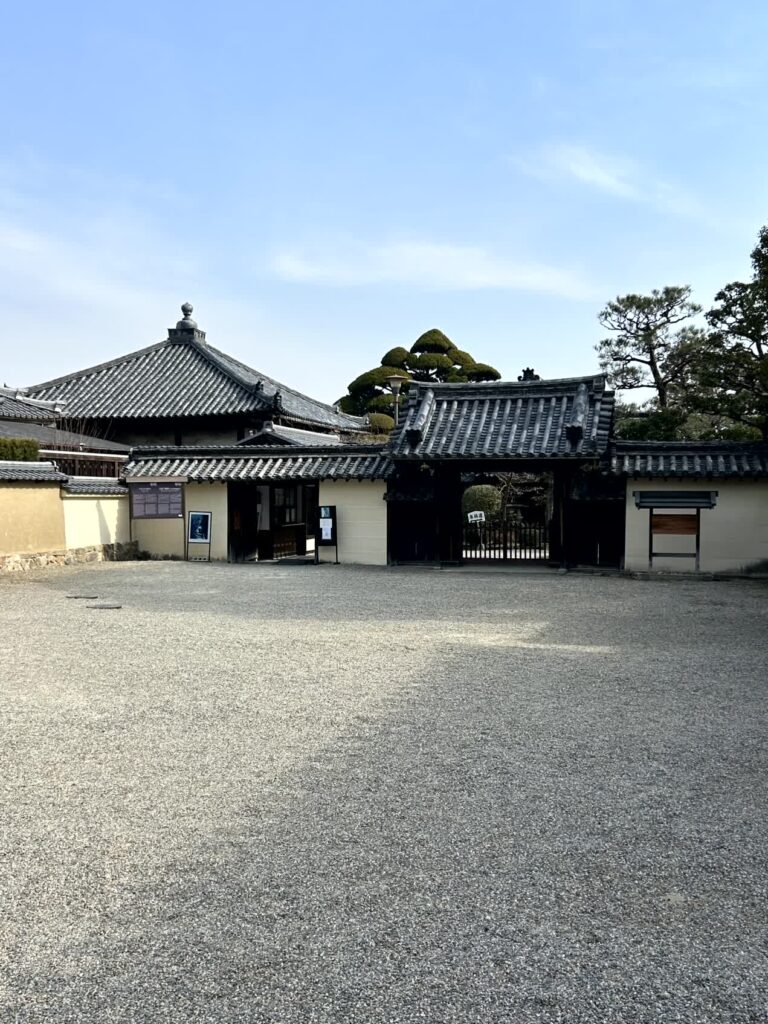 法隆寺の隣には、中宮寺があります。ここは、聖徳太子の母、穴穂部間人(あなほべのはしひと)皇后の祈願で創建された寺で、日本最古の尼寺です。1968年に建てられた本堂には、アルカイックスマイルと呼ばれる穏やかな笑顔をたたえた国宝の菩薩半跏思惟像が本尊として安置されており、間近で見ることが出来ます。