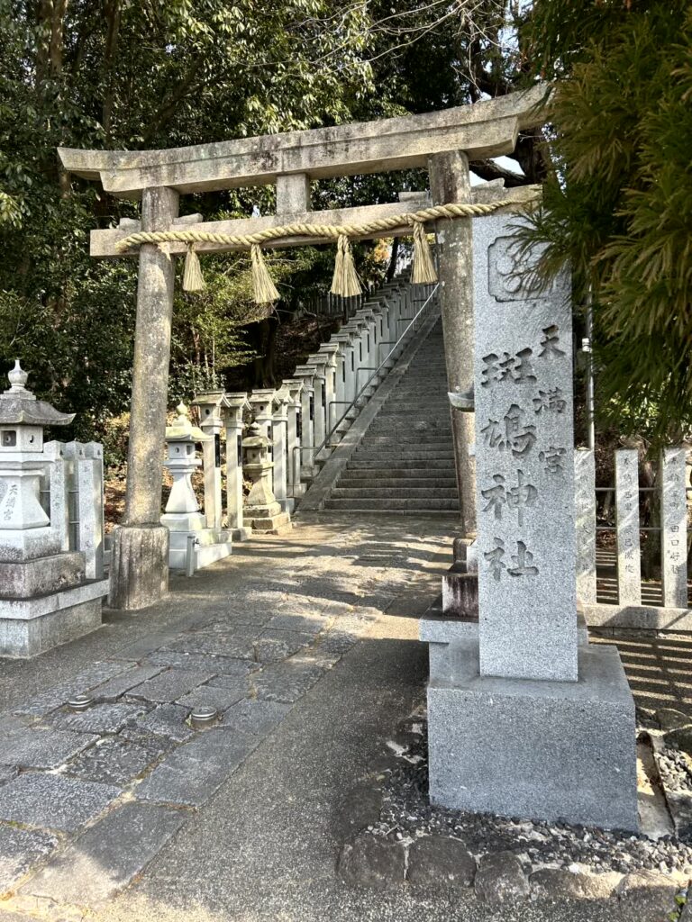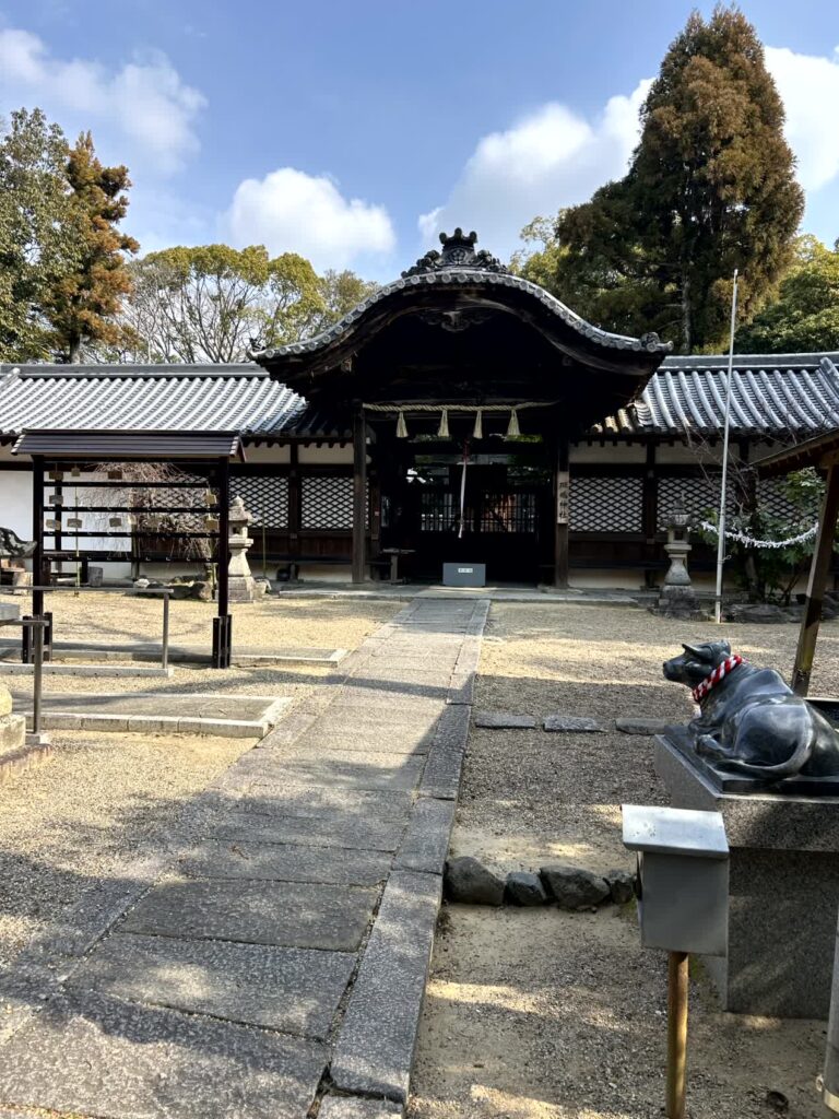 ここからは法隆寺地区を離れ、斑鳩を自転車で巡ります。最初は、斑鳩神社です。ここは平安時代に法隆寺別当が、自身が菅原氏の子孫であるとして菅原道真を祀ったといわれて、境内には牛の像が鎮座しています。旧法隆寺村の産土神として信仰されているようです。