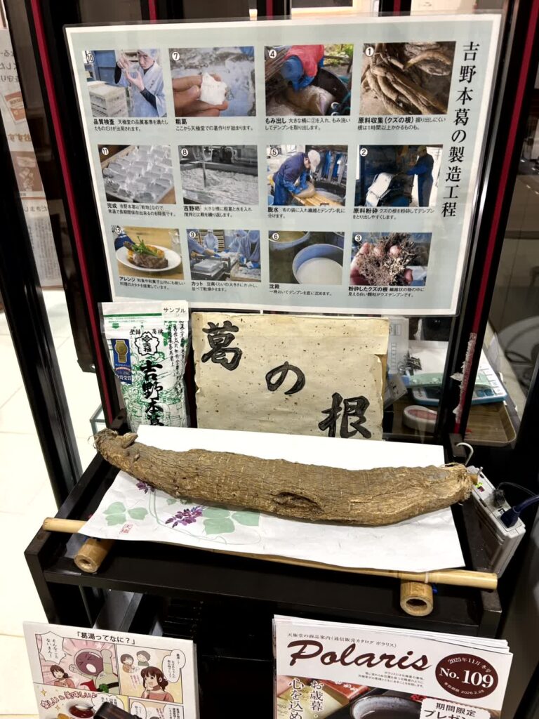 奈良の最後に、葛といえば吉野葛。天極堂のJR奈良駅前店で、プルンとした本葛の弾力と透明感がある作りたてでしか味わえない葛もちを頂きました。本店は混んでいるようですが、ここはそうでもありません。今回の旅行はここで終了です。