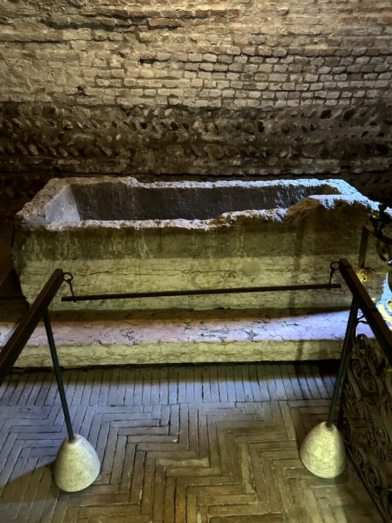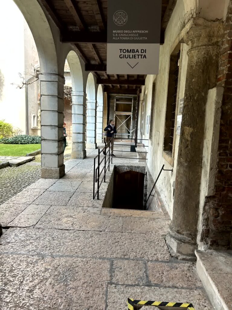 最後は、ジュリエッタの墓があるというフレスコ画博物館を見学します。物語の主人公に、お墓があるというのもなんか変な気がしますが。フレスコ画博物館に入ると、地下に降りていく階段があります。その階段を下りた先に、ジュリエットの墓がありました。元々は何だったんでしょう?
