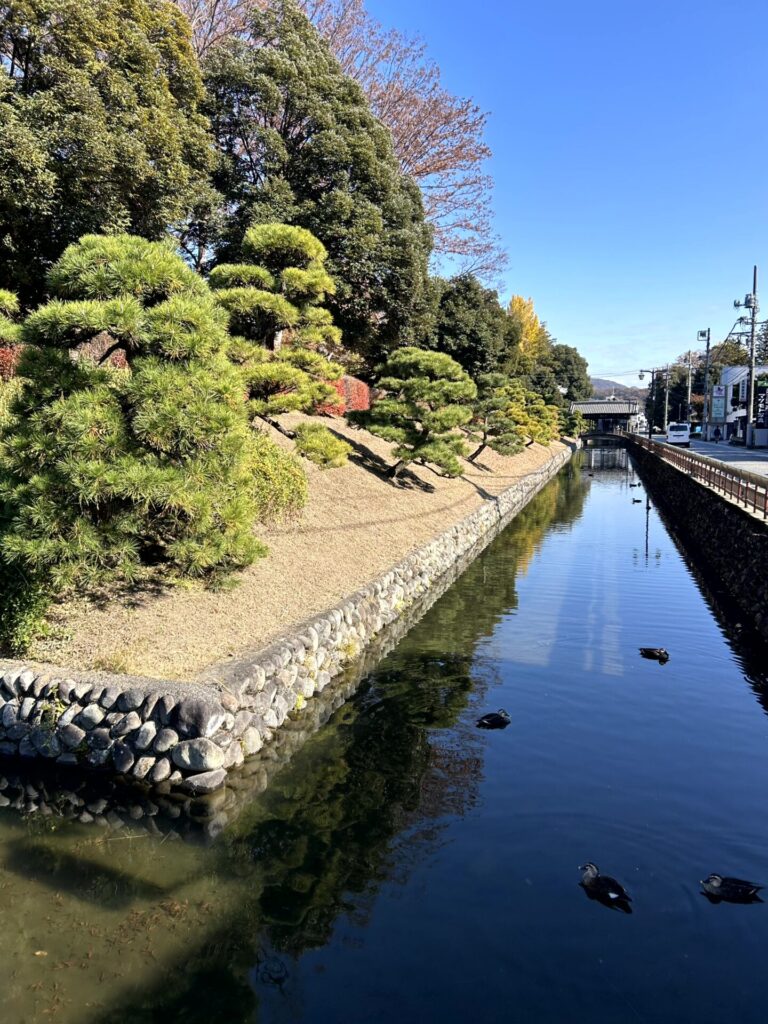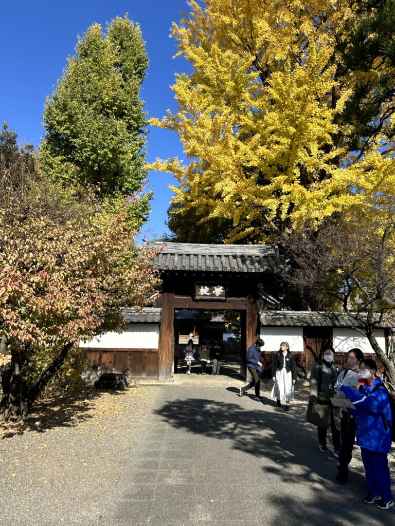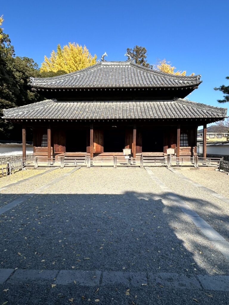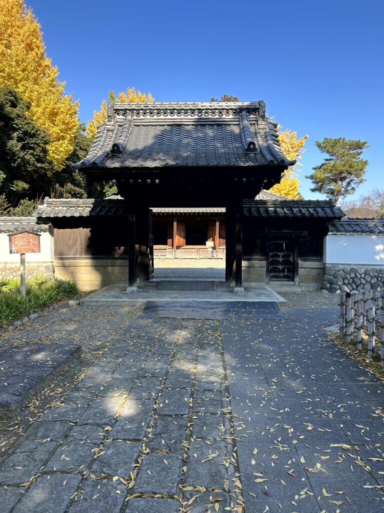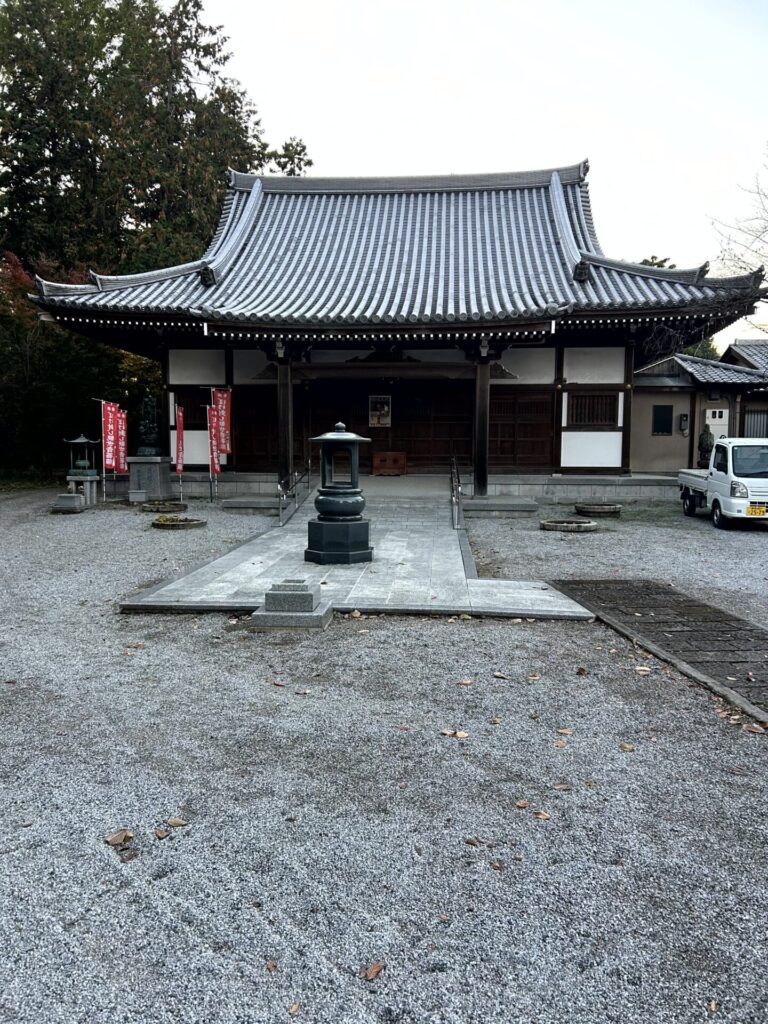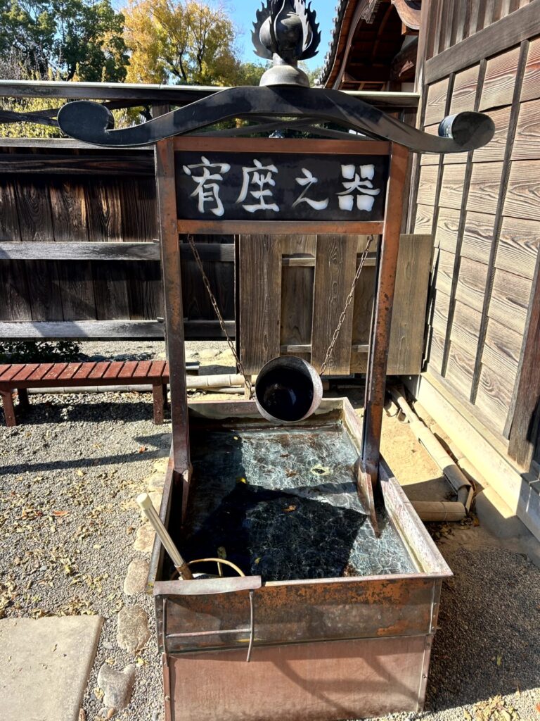 今日一番は、「床もみじ」で有名な法徳寺に行くことにします。このお寺は、桐生地域の領主であった桐生正綱により、室町時代、1450年頃に創建された臨済宗建長寺派の禅寺です。本堂に入ると、鏡面状の床に、前方に見えるもみじと天井や前方にある傘が美しく映っています。床の周りには、写真を撮る参拝客が連なっています。今日は紅葉のベストタイミングです。