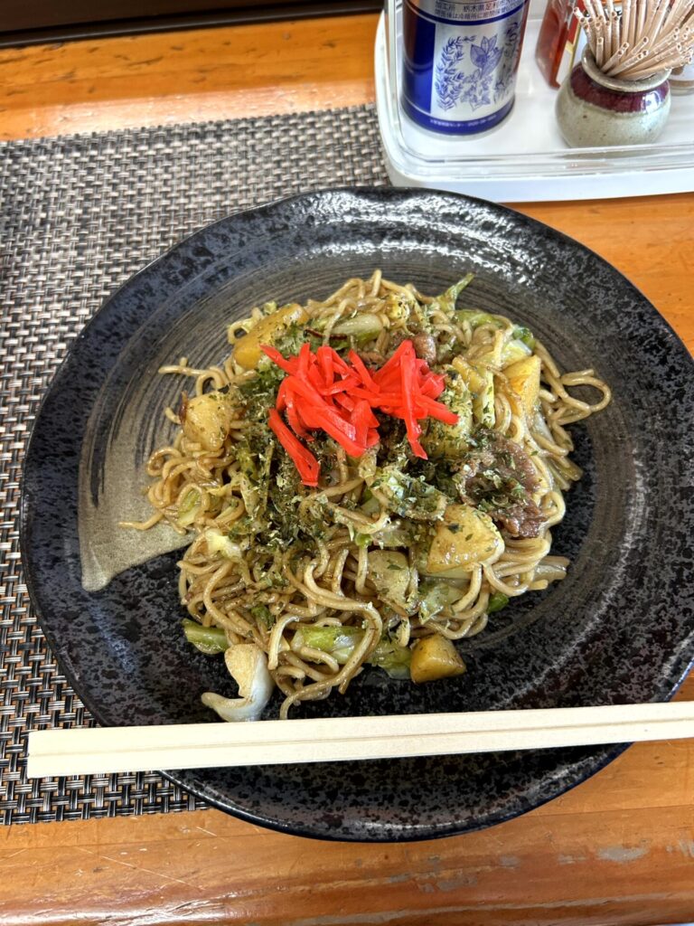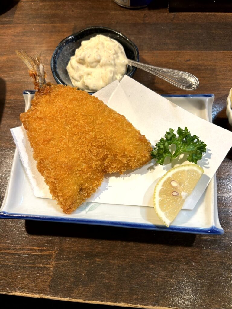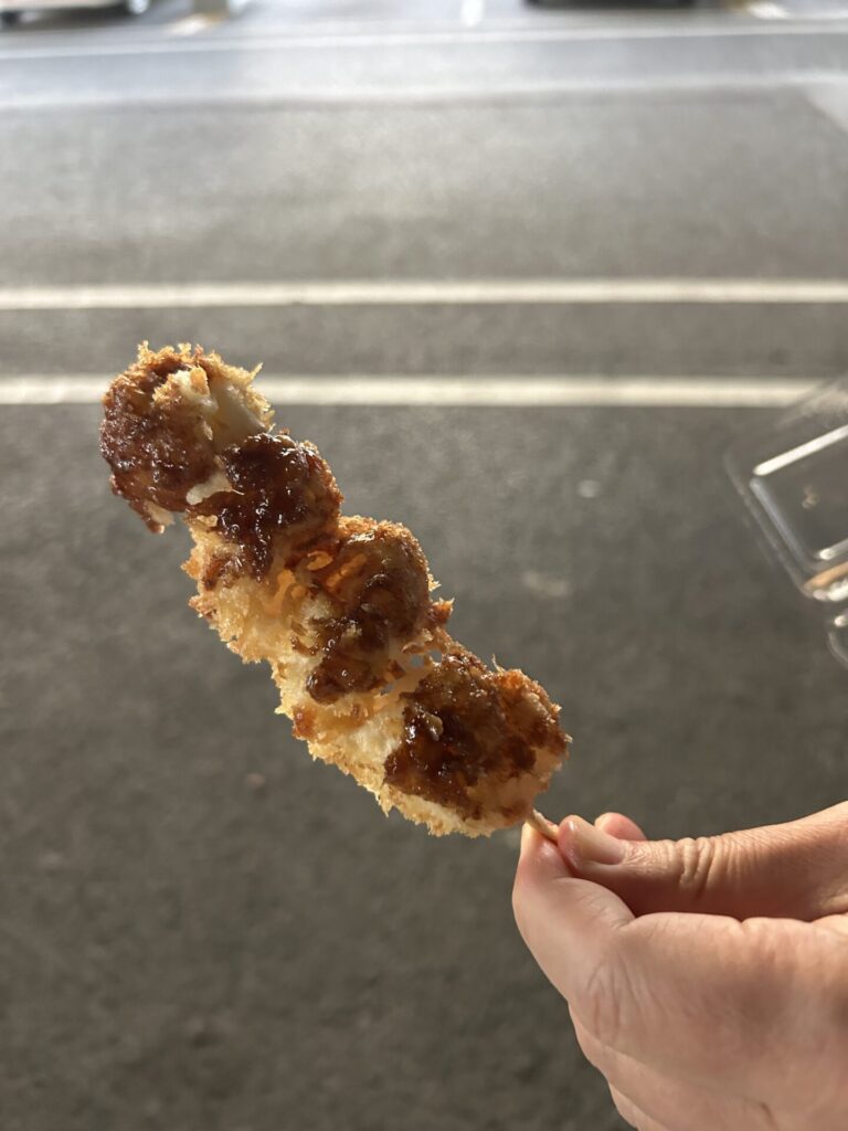 厄除け大使の前に、佐野市観光物産会館があり、そこに「佐野名物いもフライ」というパンフレットがありました。早速試食しに Googleで見つけた「イモゾー」にい行ってみます。人気店なのか、道路には車が何台も止まっています。注文してから揚げますので少し待ちますが、熱々でほっこりのソース味の芋フライでした。