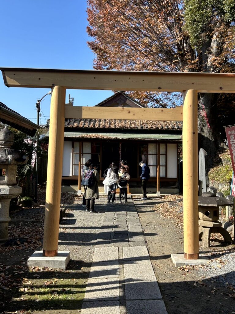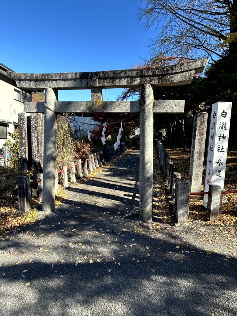 宝徳寺から車で数分のところに白滝神社があります。この神社は、都から来て桐生に絹織物の技術を伝えた官女を機神・白滝姫ととして祀っています。神社の北側に「降臨石」(こうりんせき)と呼ばれる大岩があり、 昔、耳をあてるとその中から機音が聞こえていたとの言い伝えがあます。本殿背後の斜面上には、御神木の市指定天然記念物「白瀧神社のケヤキ」が聳えてい.ます。