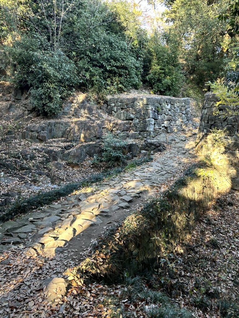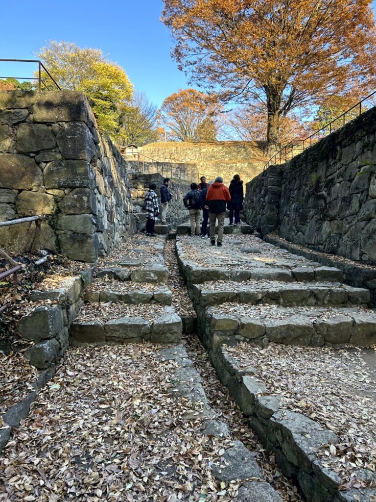 平安時代の末からこの地の領主であった佐野氏は、早くから戦いに備えて急峻な地形の唐沢山に城を築いていきます。豊臣秀吉による小田原城攻めの後には、東日本では数少ない山頂の主郭分一帯の高石垣を築き、関東屈指の山城となります。しかしながら、1602年、麓に佐野城が築かれ、城は歴史の幕を閉じています。昨日見学した金山城と同じように、ここも現在、本丸跡は、唐沢山神社となっています。唐沢山神社の鳥居をくぐると、神橋があり、敵が攻め寄せた場合、この橋を落とします。今は石の橋となってますが、当時は桟橋でした。参道(当時は大手道)を進み、左に折れ、階段を上った先に本殿(本丸)があります。