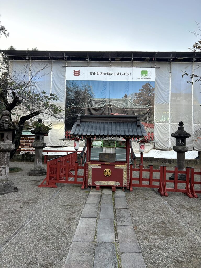 桐生の市街に戻ります。桐生新町伝統的建造物群保存地区を散策しますが、はじめは一番北側にある桐生天満宮の参拝から始めます。本殿・幣殿・拝殿は、2023年に国の重要文化財に指定されています。そこから本町通りを南に進みます。通りの左右には、織物関係の蔵や町屋、ノコギリ屋根の機織り工場などが残されています。大部分はリノベされ、お店や展示施設になっています。
