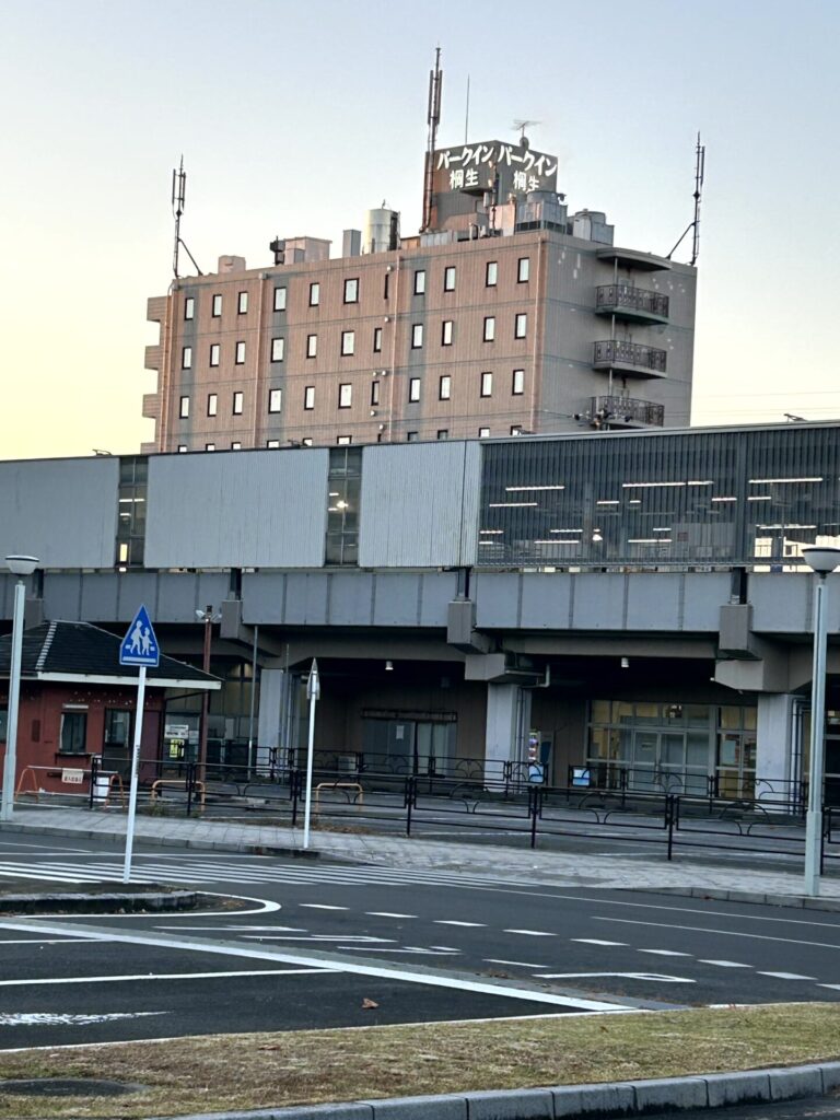 早朝、ホテル周辺を歩いてみます。駅前から見ると、宿泊しているパークイン桐生は、本当に、駅に接していますね。ここから徒歩数分の所には、上毛鉄道の、西桐生駅があります。